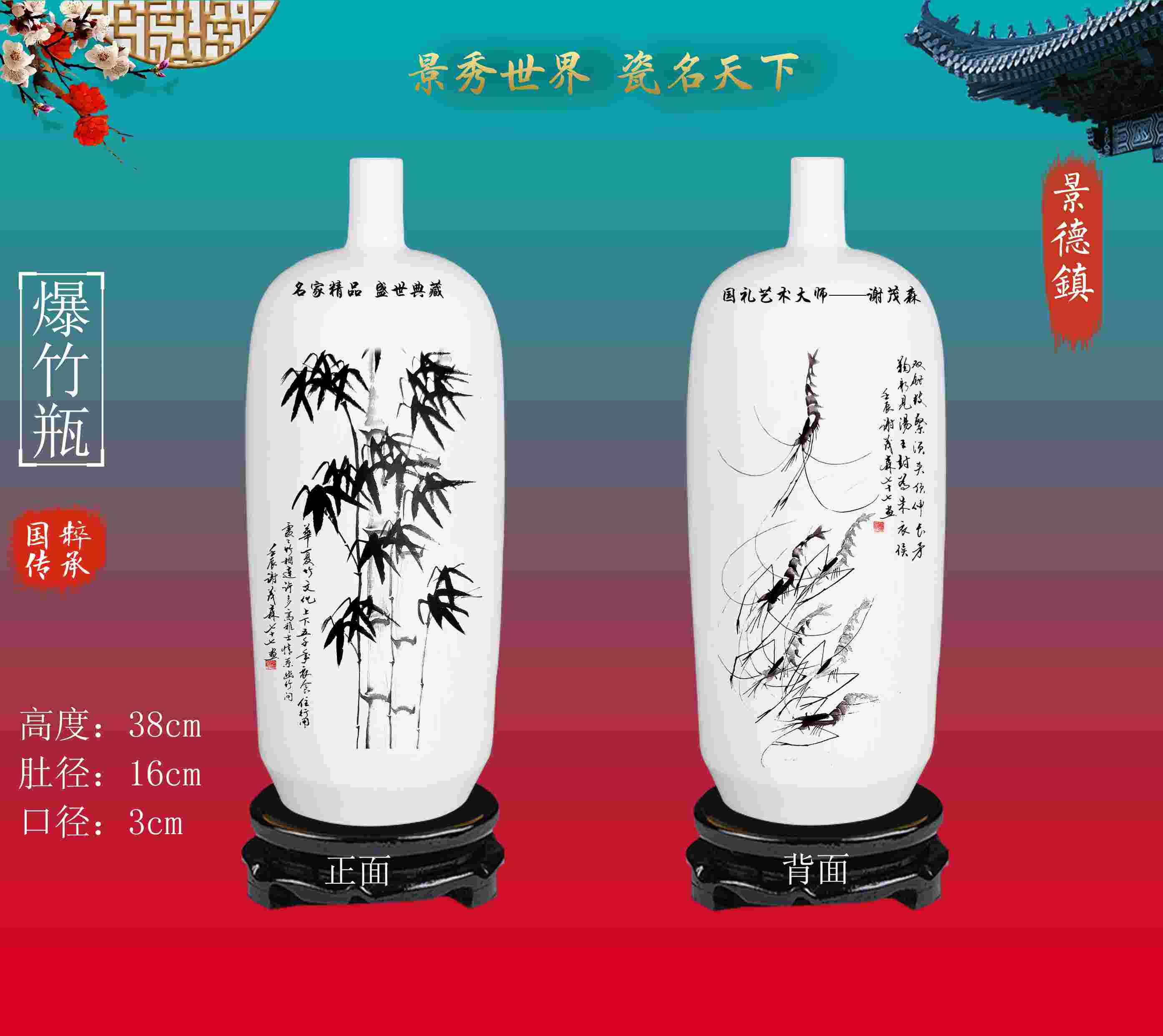 高度38cm*肚径16cm*口径3cm景德镇爆竹瓶