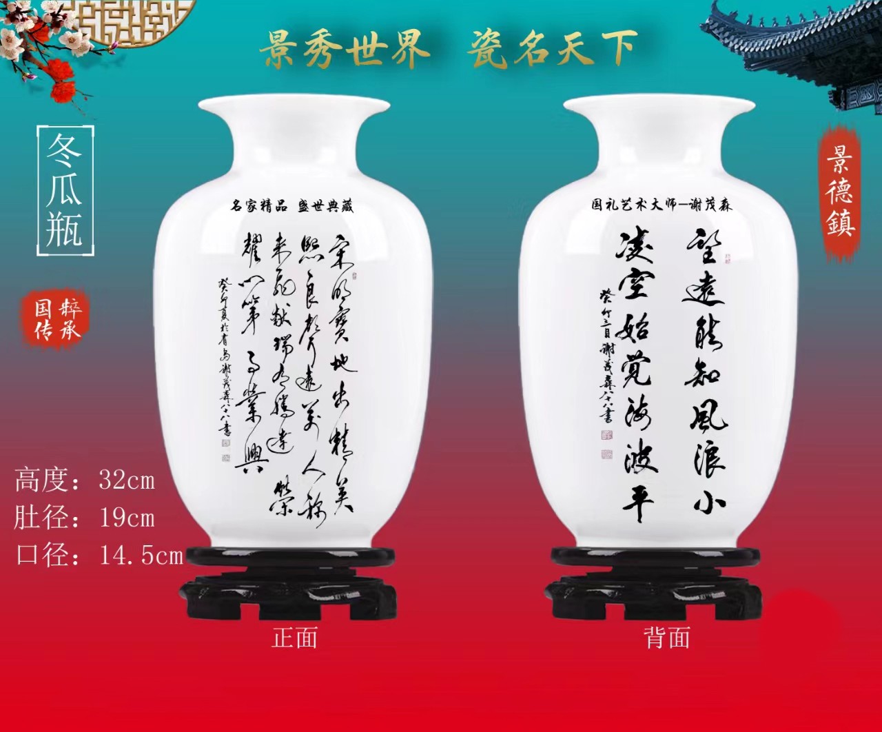 高27cm*肚径19cm*口径14.5cm景德镇冬瓜瓶